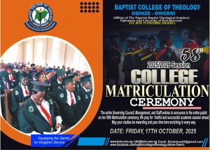 The College wishes to announce to the public of her 58th Matriculation Ceremony to be hold on the 17th of October, 2025.